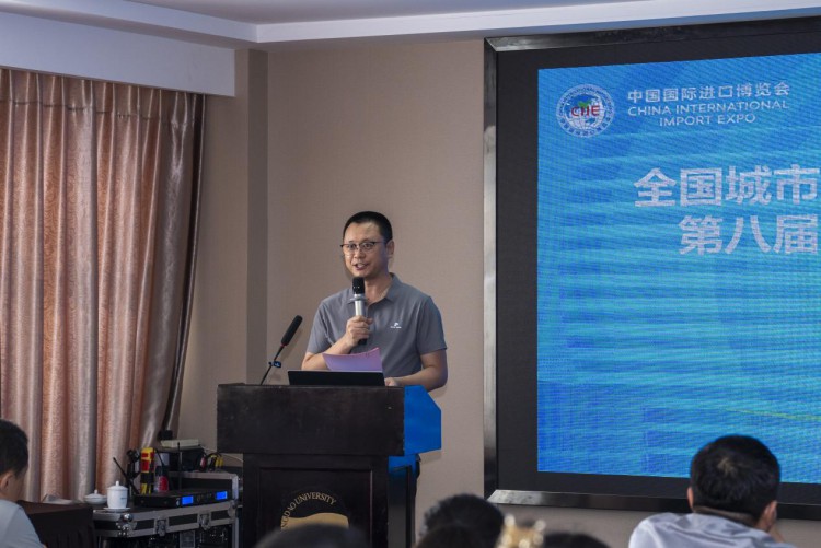全国城市工业品贸易中心联合会副会长兼秘书长刘恝在活动上介绍了第八届进博会的展区分布、优惠政策及报名注意事项。